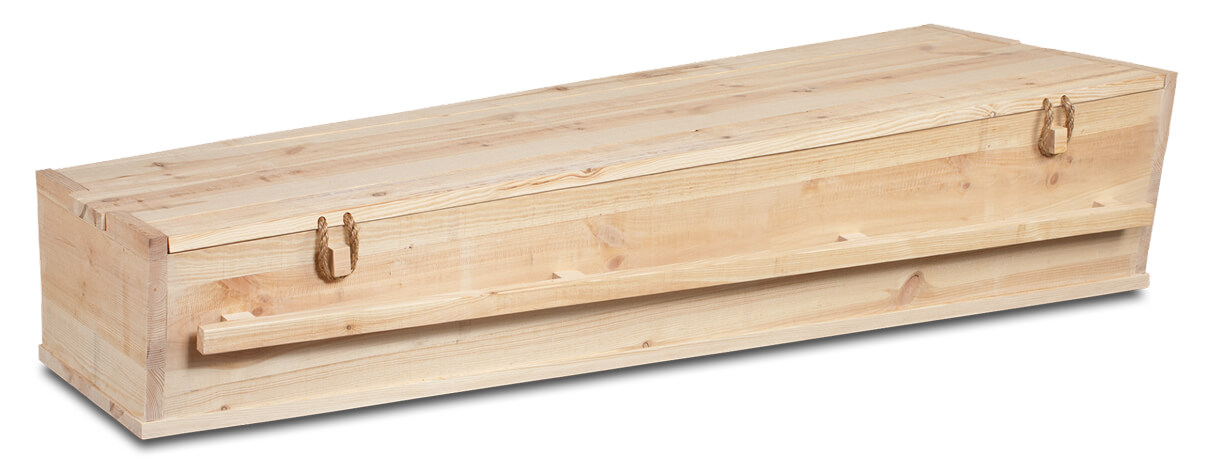 Deze massief populieren kist heeft een strak design en is in tegenstelling tot de traditionele kisten op de helft gedeeld, waardoor de opbaring laag en zeer toegankelijk is.